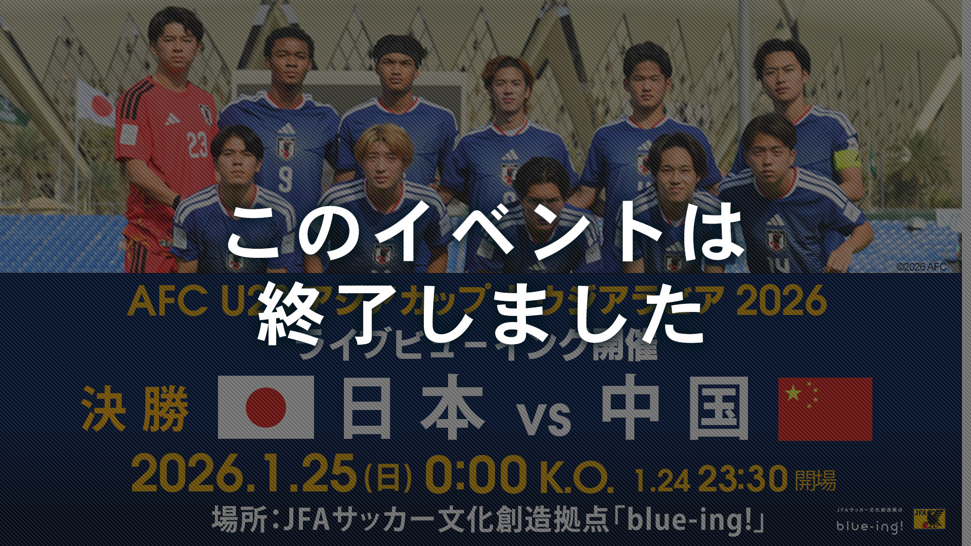 ■ 【U23日本代表】『AFC U23アジアカップ サウジアラビア 2026』決勝ライブビューイング開催決定!