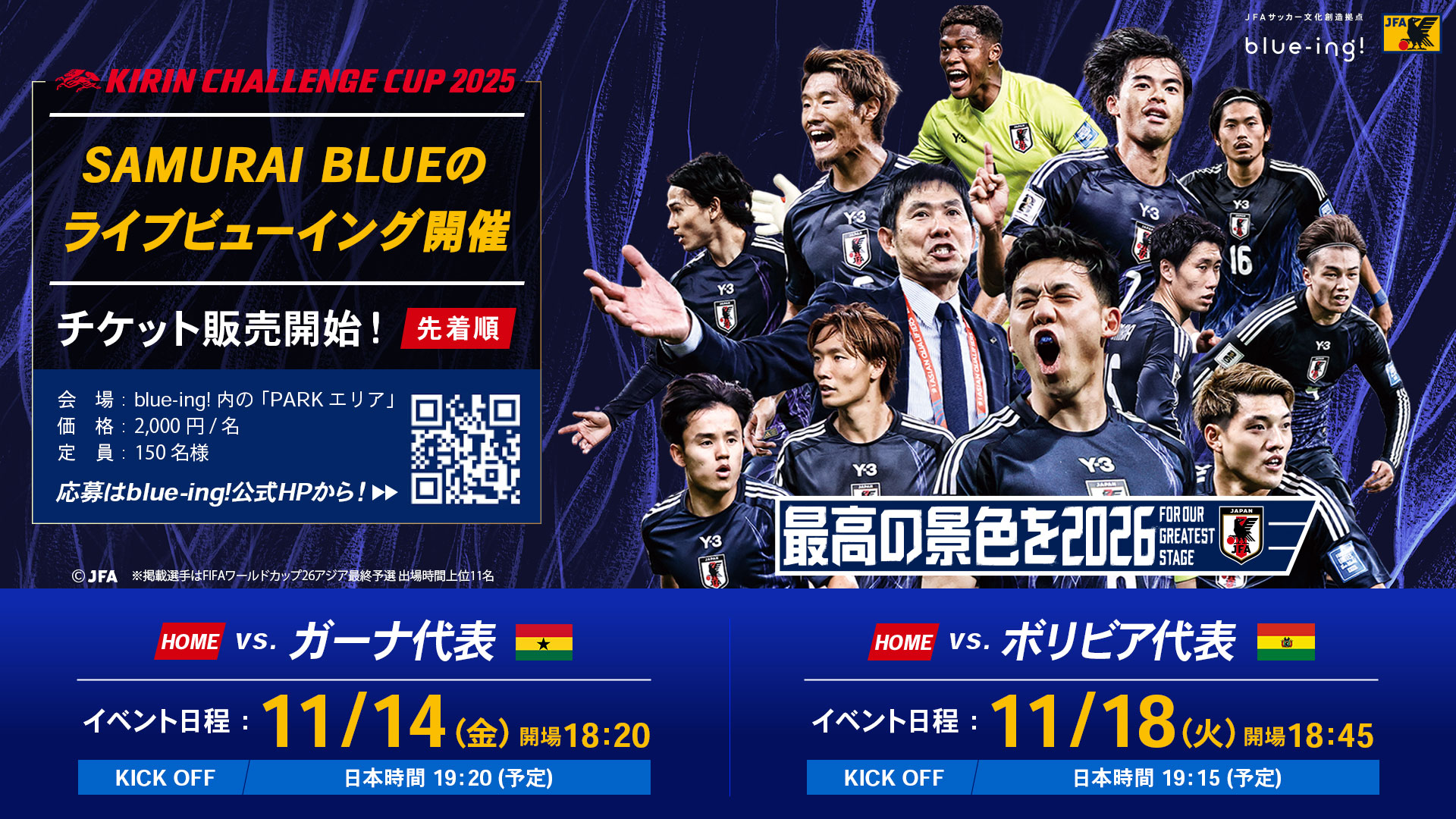 ■【SAMURAI BLUE】11月『キリンチャレンジカップ2025』ライブビューイング開催決定!